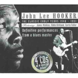 John Lee Hooker (1917-2001) was one of the most extensively recorded blues players. His idiosyncratic and improvisational approach was surprisingly successful when he moved to Detroit from Clarksdale MS, and recorded for the first time after World War II. Hooker varied his tempo and meter at will, and mixed singing and talking. Not everyone was a fan. Buddy Guy reports in his book “When I Left Home” that blues song-crafter Willie Dixon didn’t “get” Hooker at all. Hooker’s earliest recordings, found on a four-disc box from JSP called “Classic Early Years 1948-51,” still sound fresh today.